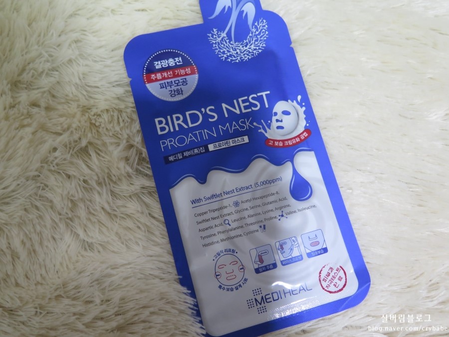 ::파란색인 제비집마스크팩:: 단백질, 아미노산이 풍부한 바다제비집으로 피부에 탄력을 주며 촉촉하게 가꿔준다고 합니다. 제가 써본결과 수분감이 장난이었습니다.